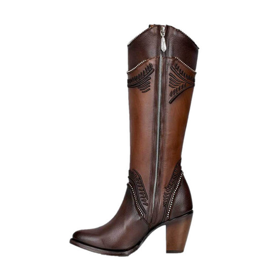 Cuadra Womens Embroidered High Knee Boot - Damasco Chocolate