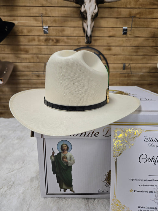 White Diamond 100,000X Sinaloa San Judas Chapa de Oro Sombrero Fino