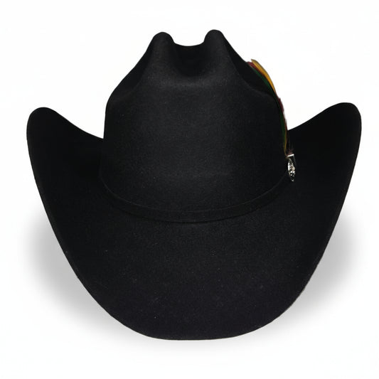 El Mayor 100x Belico Texana Wool Felt Hat w/ Metal Feather -Black