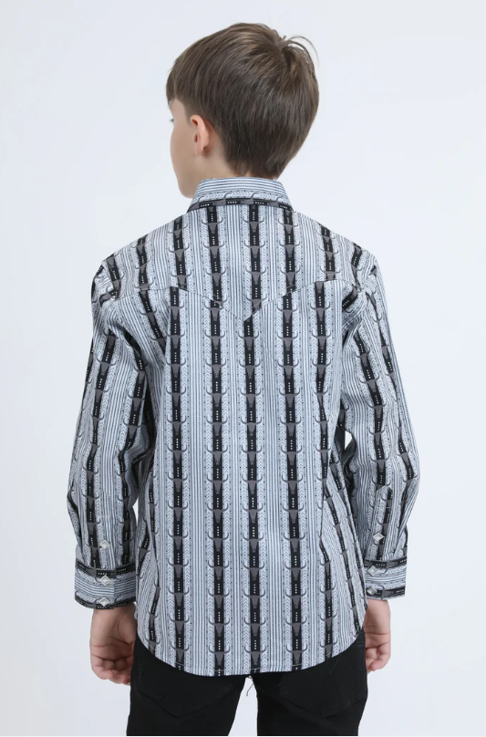 Platini Boys Western Modern Fit Cotton/Spandex Long Sleeve Black Shirt with Snaps