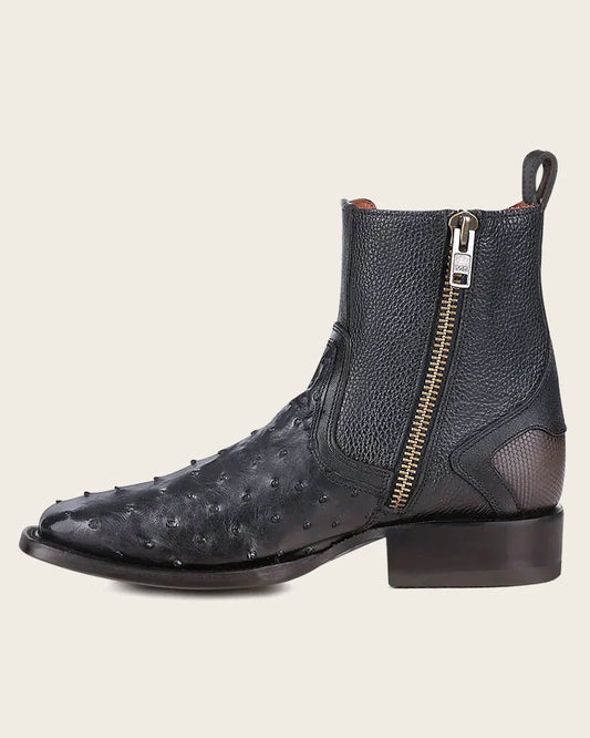 Cuadra Mens Urban Ostrich Ankle Boot - Black