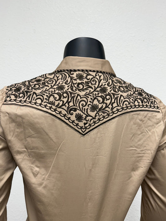 Lamasini Mens Western Embroidered Floral Long-Sleeve Shirt - Beige