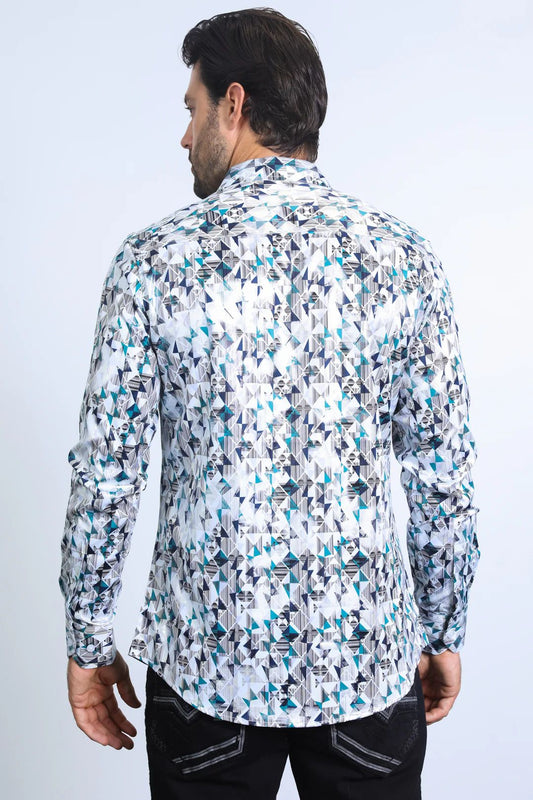 Platini Mens Shirt Modern Fit Stretch Foil Fashion (white/grey)