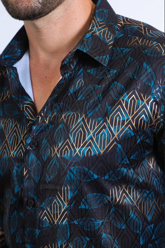 Platini Mens Modern Fit Stretch Foil Fashion shirt (Black)