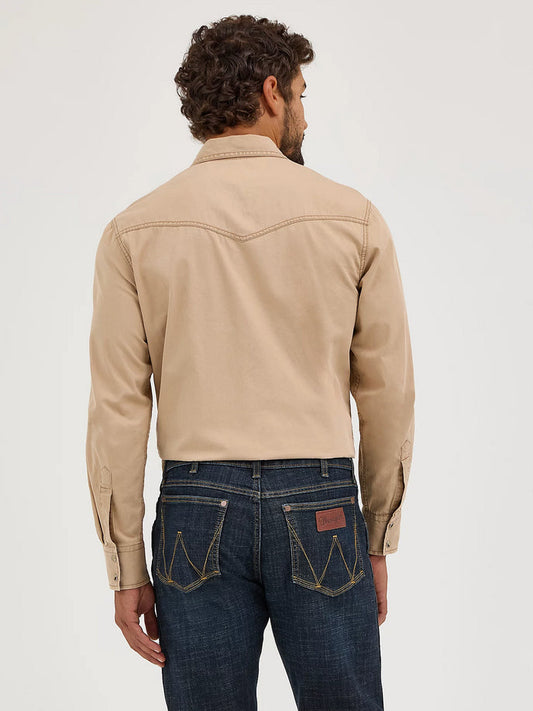 Wrangler Mens Retro Premium Pigment Dyed Twill Western Snap Shirt (Tan)