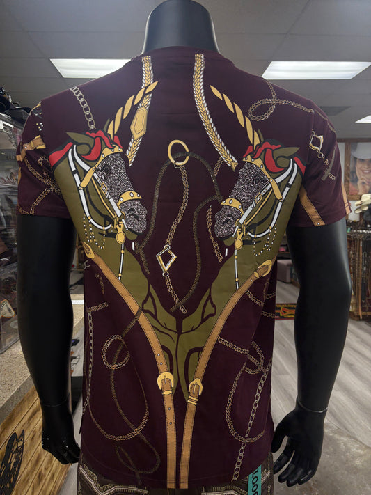 Platini Mens Horse Chain Print T-Shirt - Wine
