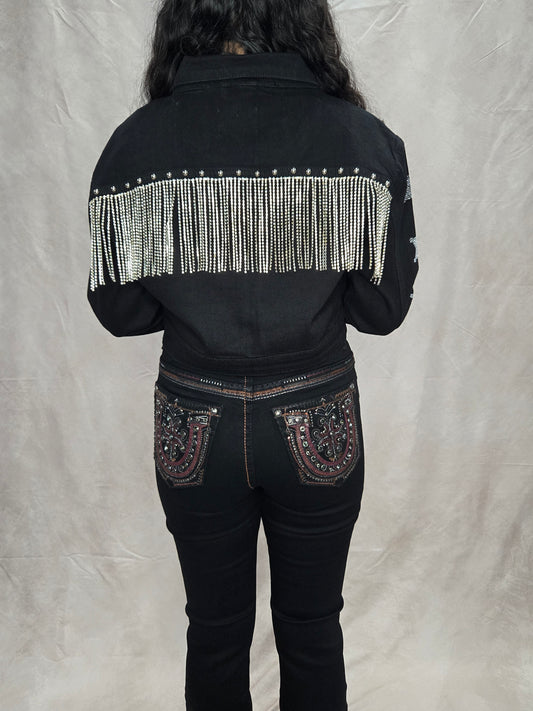 Womens Rhinestone Fringe Jacket w/ Star and Horse-show Rhinestones