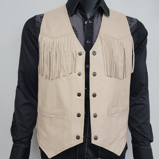 AJ Mens Western Fringe Leather Vest – Beige