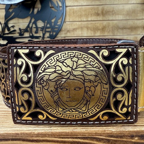 Medusa Lazer Print Belt - Gold