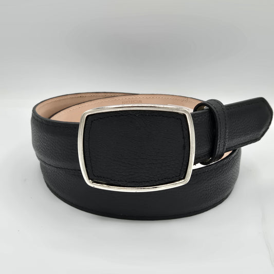 Del Cesar Deer Print Rectangular Buckle Leather Belt - Honey, Black, Burned