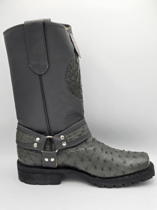 Los Altos Mens Ostrich Leg Biker Boot - Black