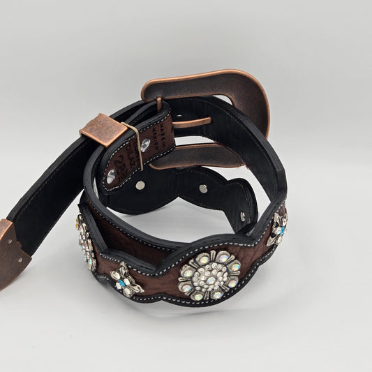 Nocona Womens Floral Crytals Belt - Black/Silver
