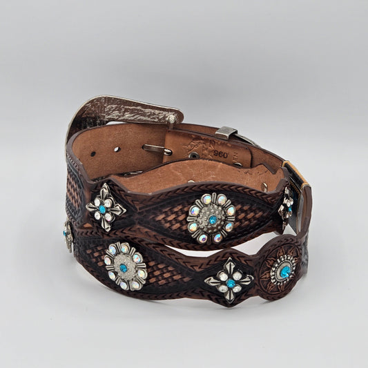 Tony Dilaz Womens Jeweled Flower Leather Belt