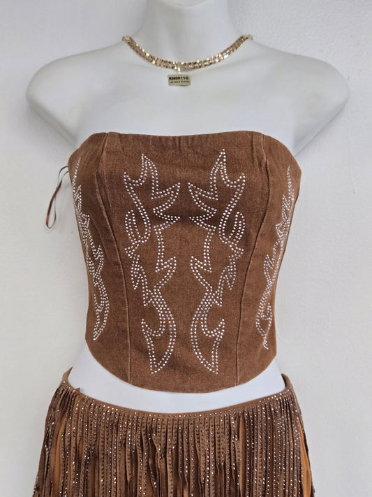 Beckee Womens Denim Corset (Hazelnut)