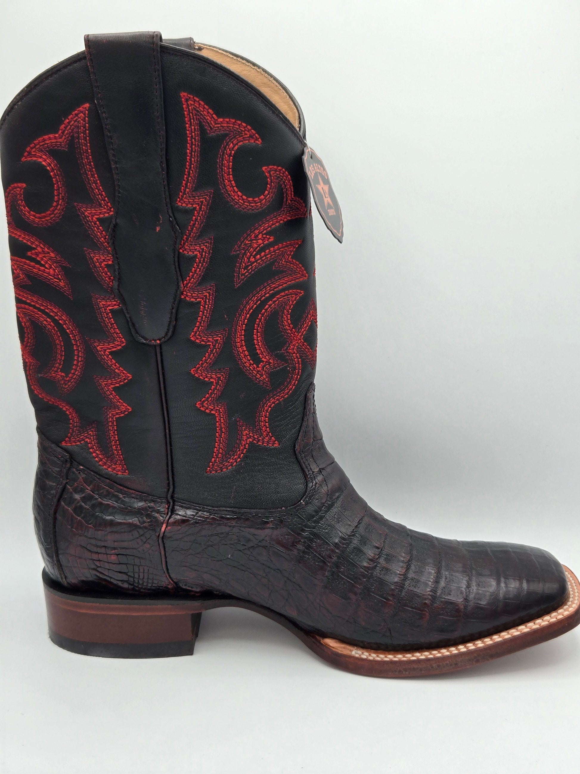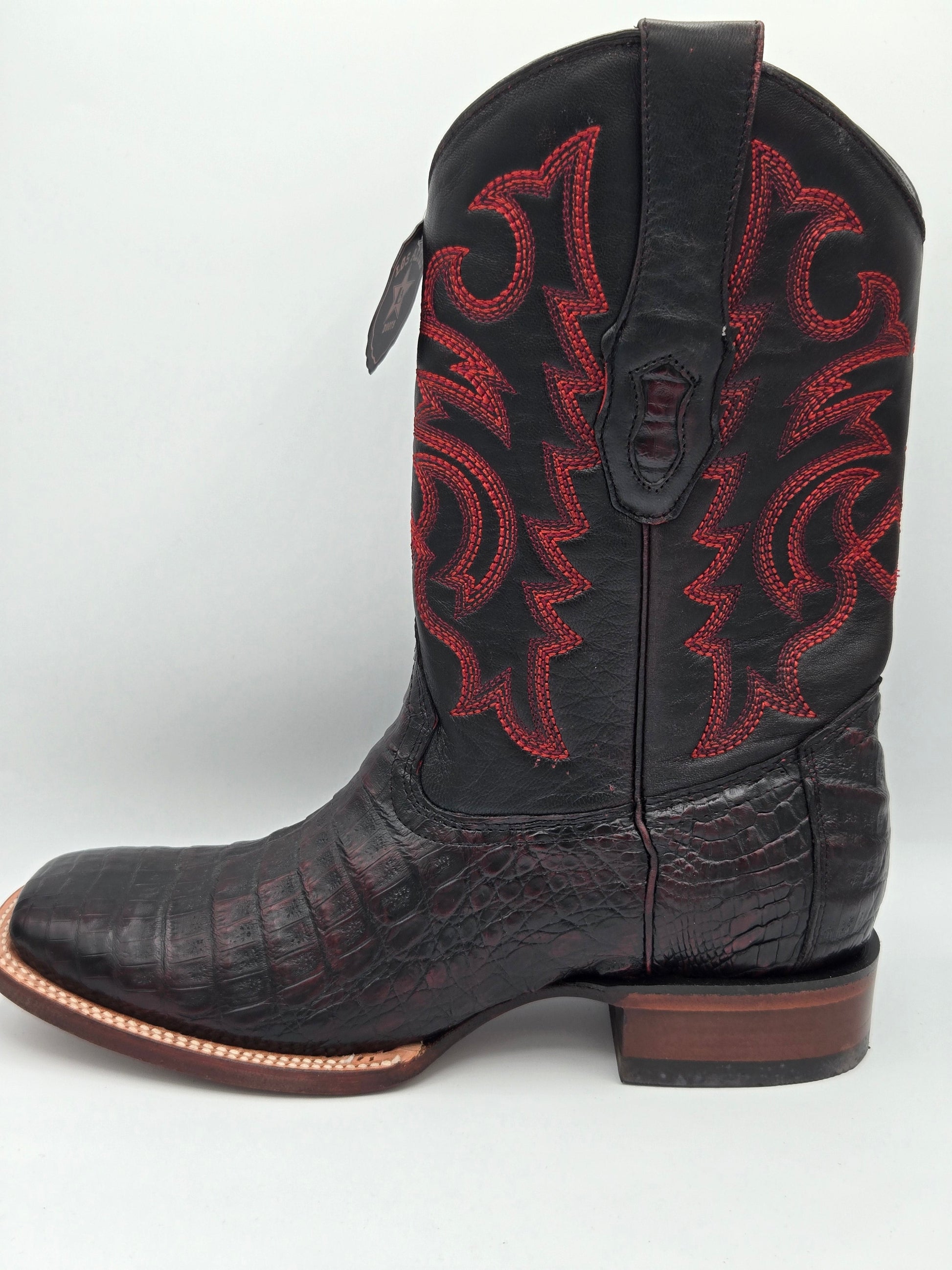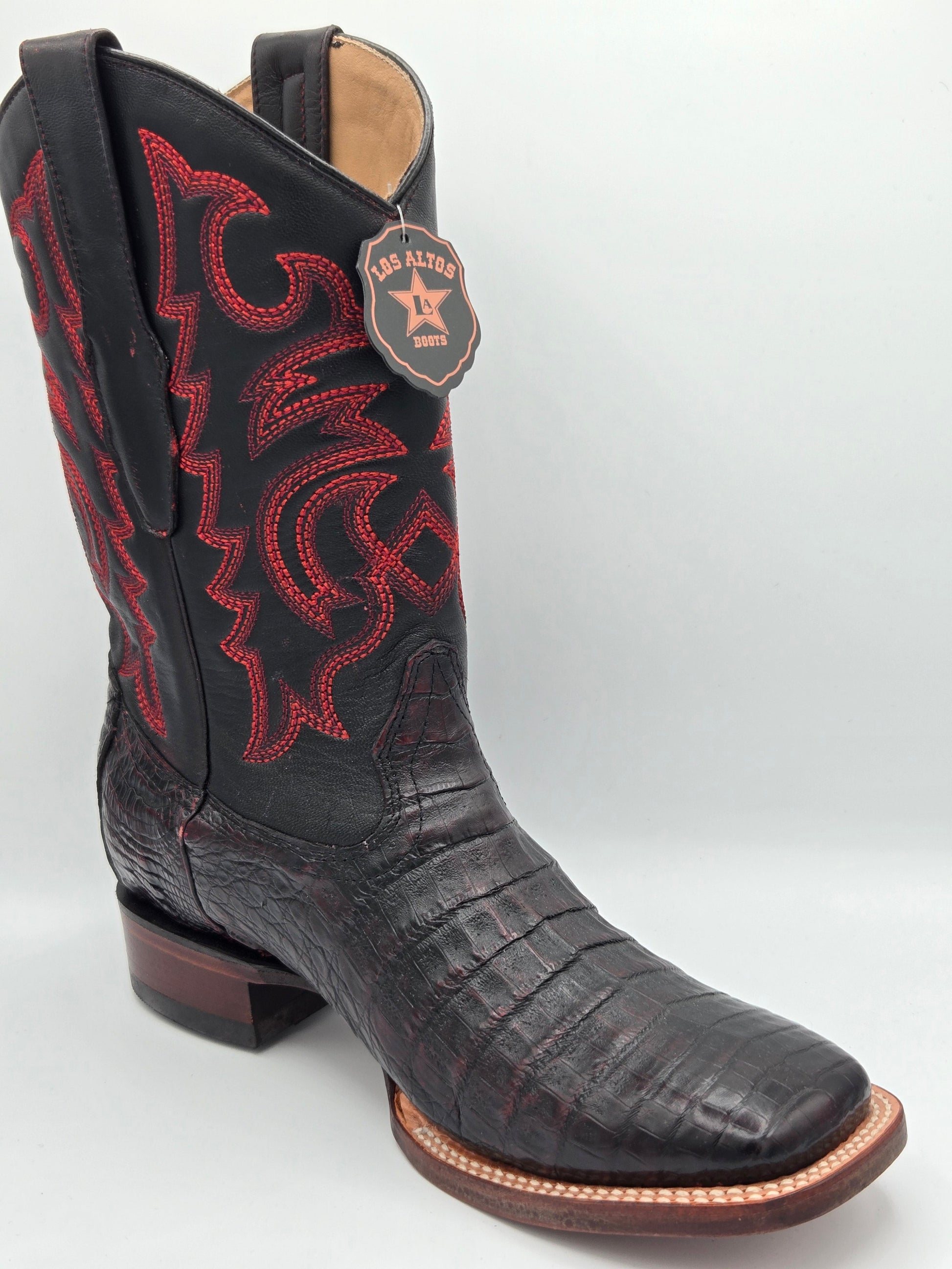 Los Altos Mens Caiman Belly Wide Square Toe - Black Cherry