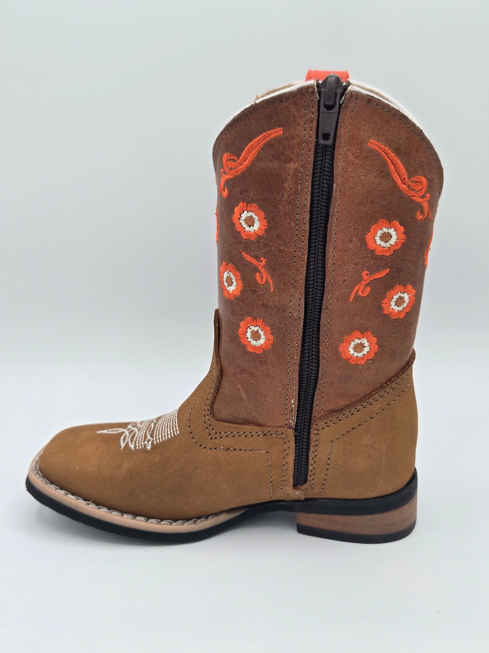 The cutest zipper boots for your little one. Made from genuine leather, these boots feature flower embroidery with the classic ringle stitch on the toe.