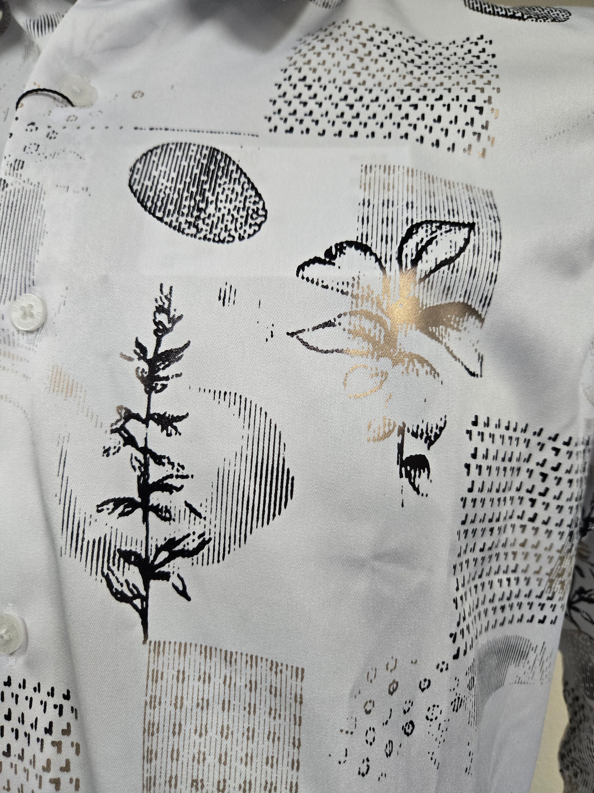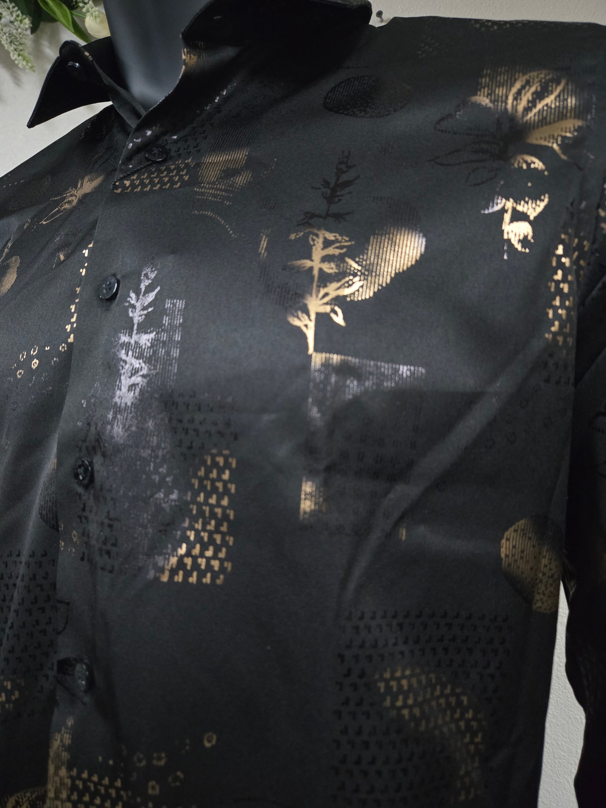 Foil dress shirt with golden floral designs
