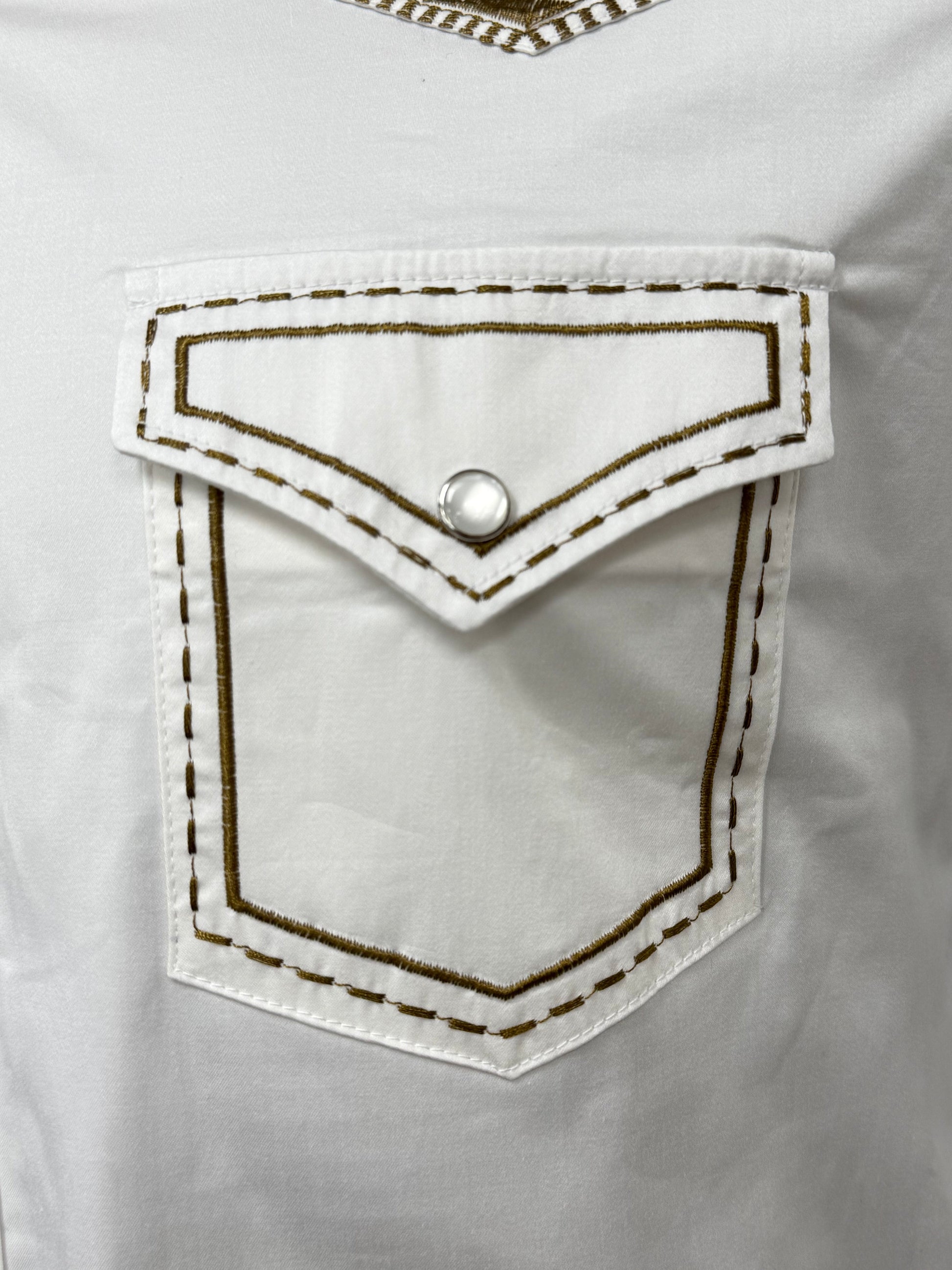 Classic charro style shirt with a twist. Made from cotton and spandex for extra stretch, Monteros' embroidered western-style shirt features two pocket flaps and, on the shoulders, charro-style embroidery with bull motifs on both shoulders and the back.
