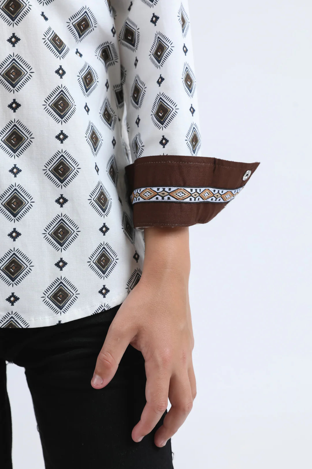 Platini Boys Diamond Print Modern Fit Shirt w/ Diamond Snaps - Black, White