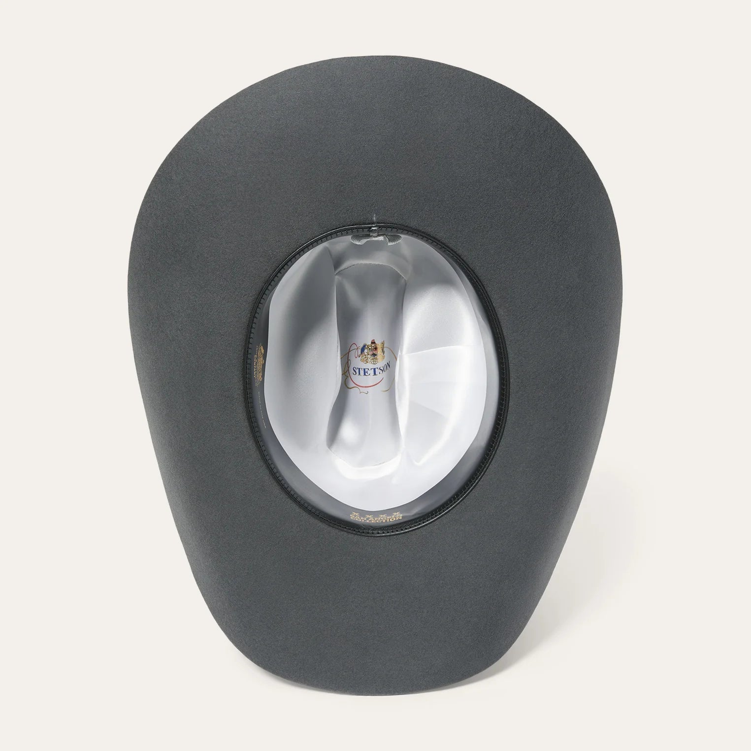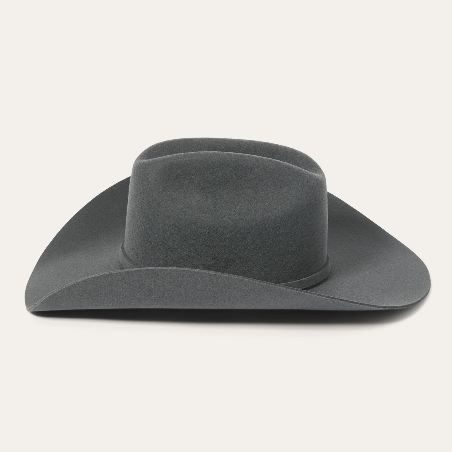 Handmade in the U.S.A. of durable, weather-resistant 4X Quality Wool Felt, the Mason 4X features a 4 ¼” brim and 4 ¼” cattleman crown finished with a matching wool felt hat band and silver-tone rowell concho. A genuine leather sweatband and full satin liner provide a secure and comfortable fit. Fit for long days on the range, our 4X quality buffalo hats are imbued with a Western spirit and fit for long days on the range. Includes an original Stetson hat box.