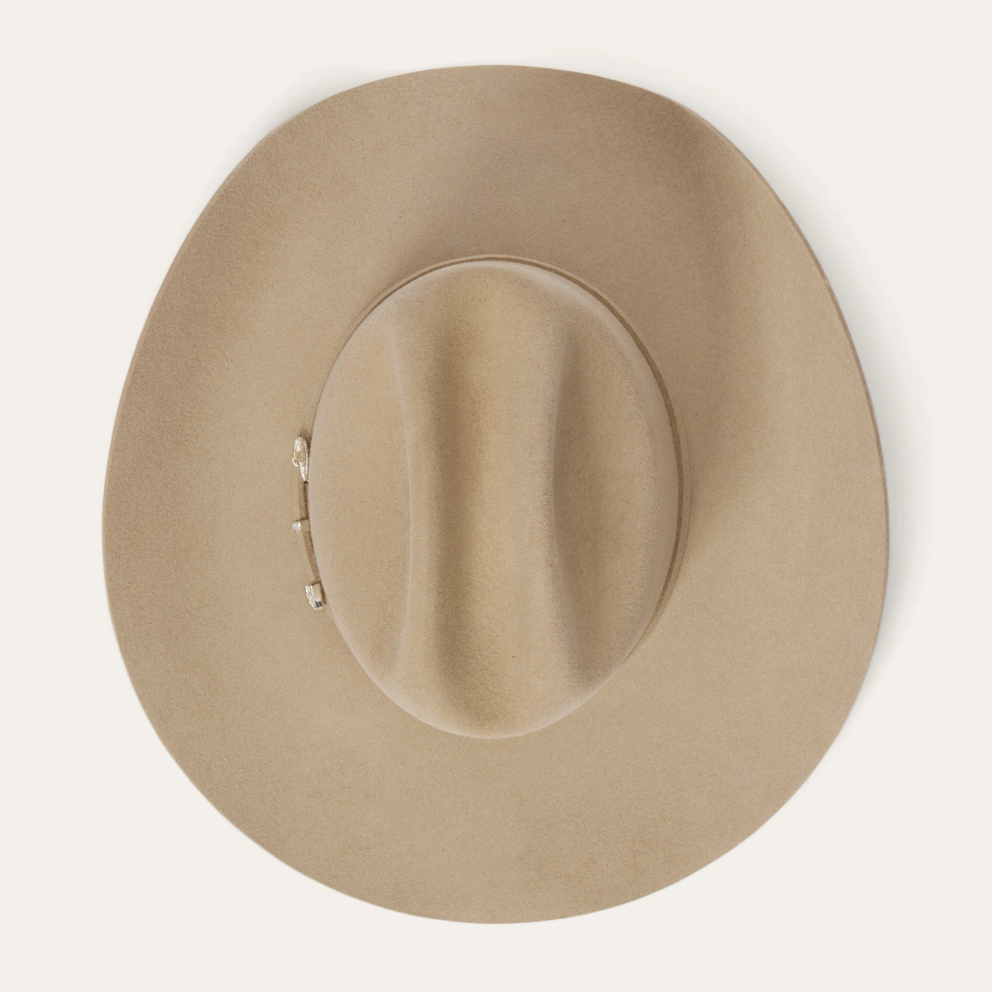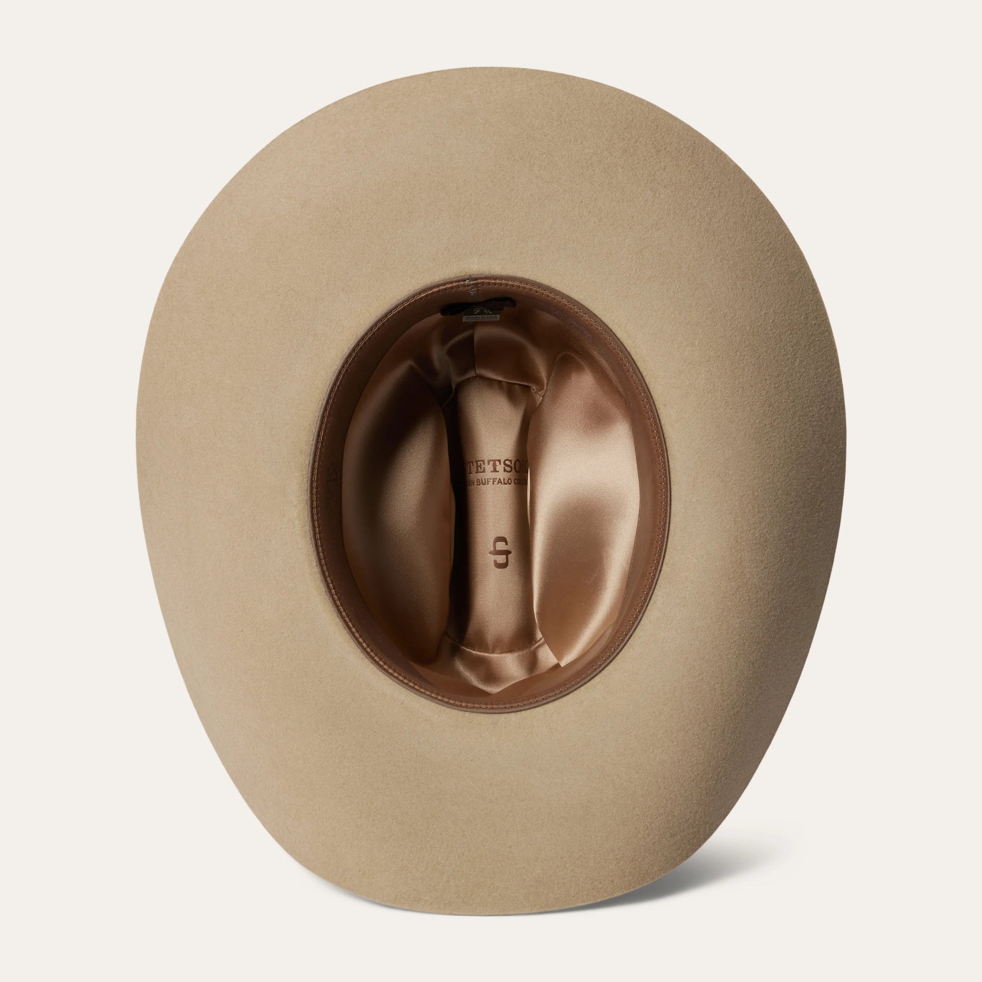 Part of theBuffalo collection, this cowboy hat is made in the USA of high-quality, weather-resistant 4X buffalo felt. Its classic Western profile features a classic cattleman crease, a 4" brim and a 4 5/8” regular oval crown. Additional details include a leather sweatband, satin lining, and a self-matching hat band with a three-piece silver-toned buckle set, as well as a Stetson hat box.
