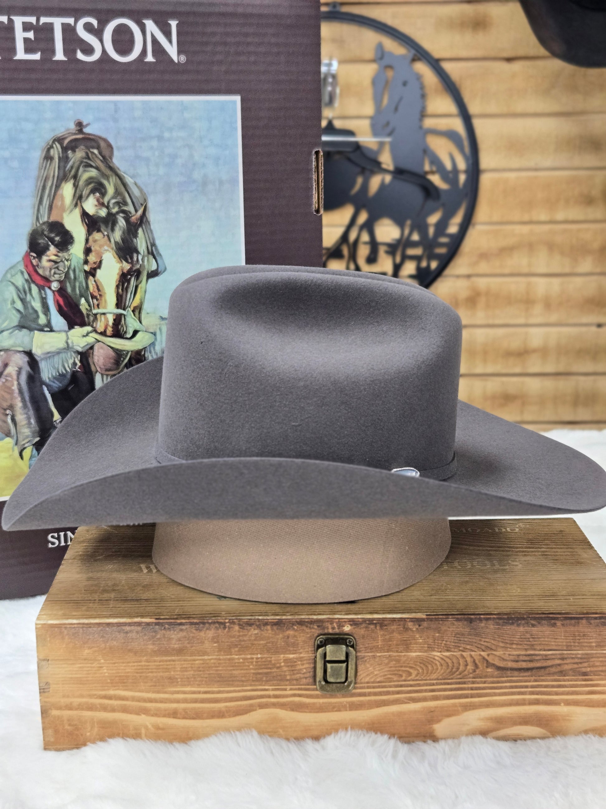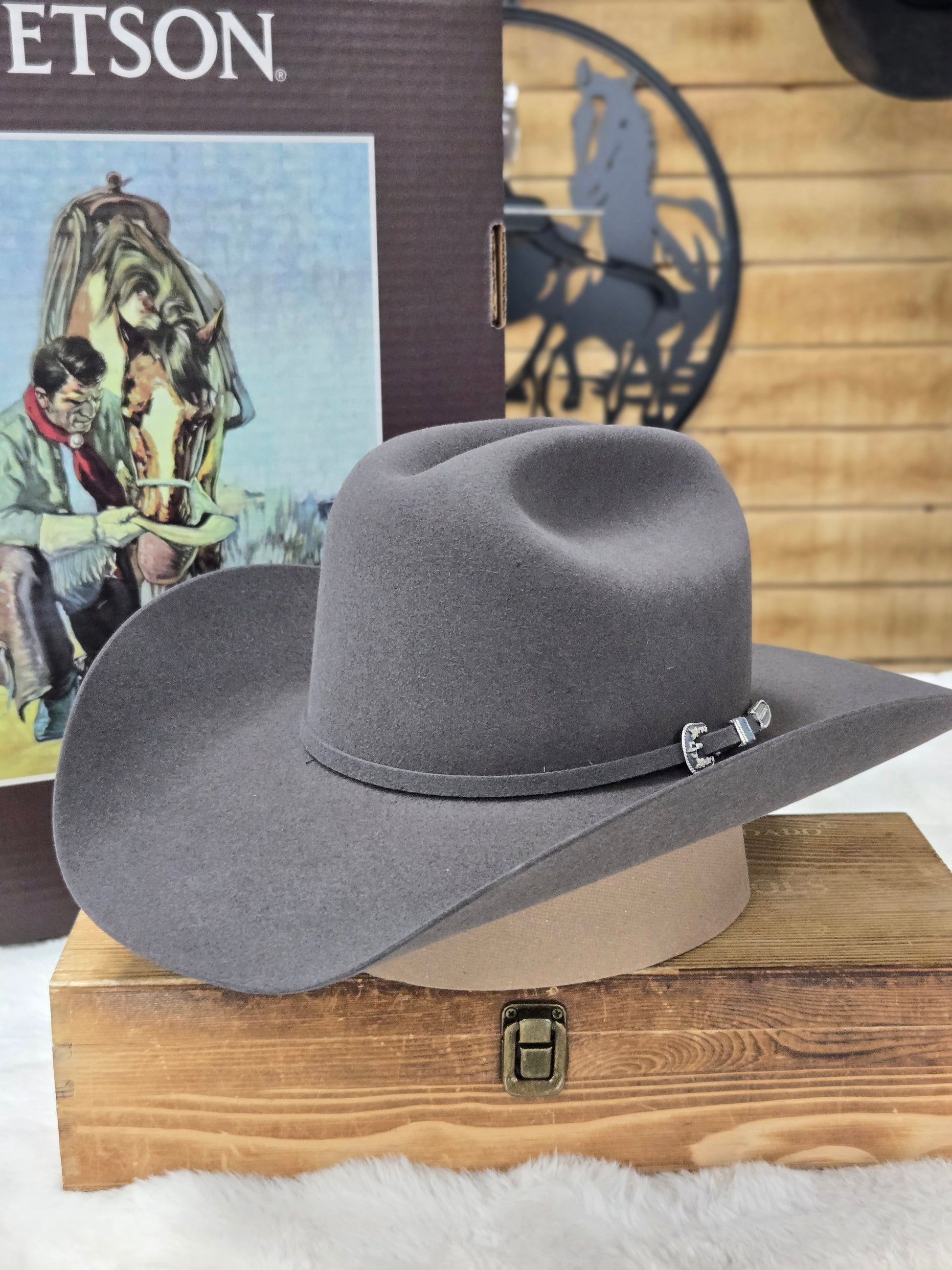 A true Stetson icon, our bestselling Skyline combines legendary quality and classic Western style in one timeless package. The Skyline is crafted from our proprietary 6X fur felt, which is prized for its durability and elegant feel, and, as with all hats that come out of our factory in Texas, each Skyline is touched by more than 100 sets of hands during production, resulting in a hat that is designed and built to stand the test of time. This edition features a 7540 profile, which translates to a 4 5/8” cattleman crown and 4” brim. Like all Skylines, it’s finished with a matching self-felt band and three-piece, silver-tone buckle. A handsewn genuine leather sweatband and full satin liner provide a time-tested fit and premium comfort.
