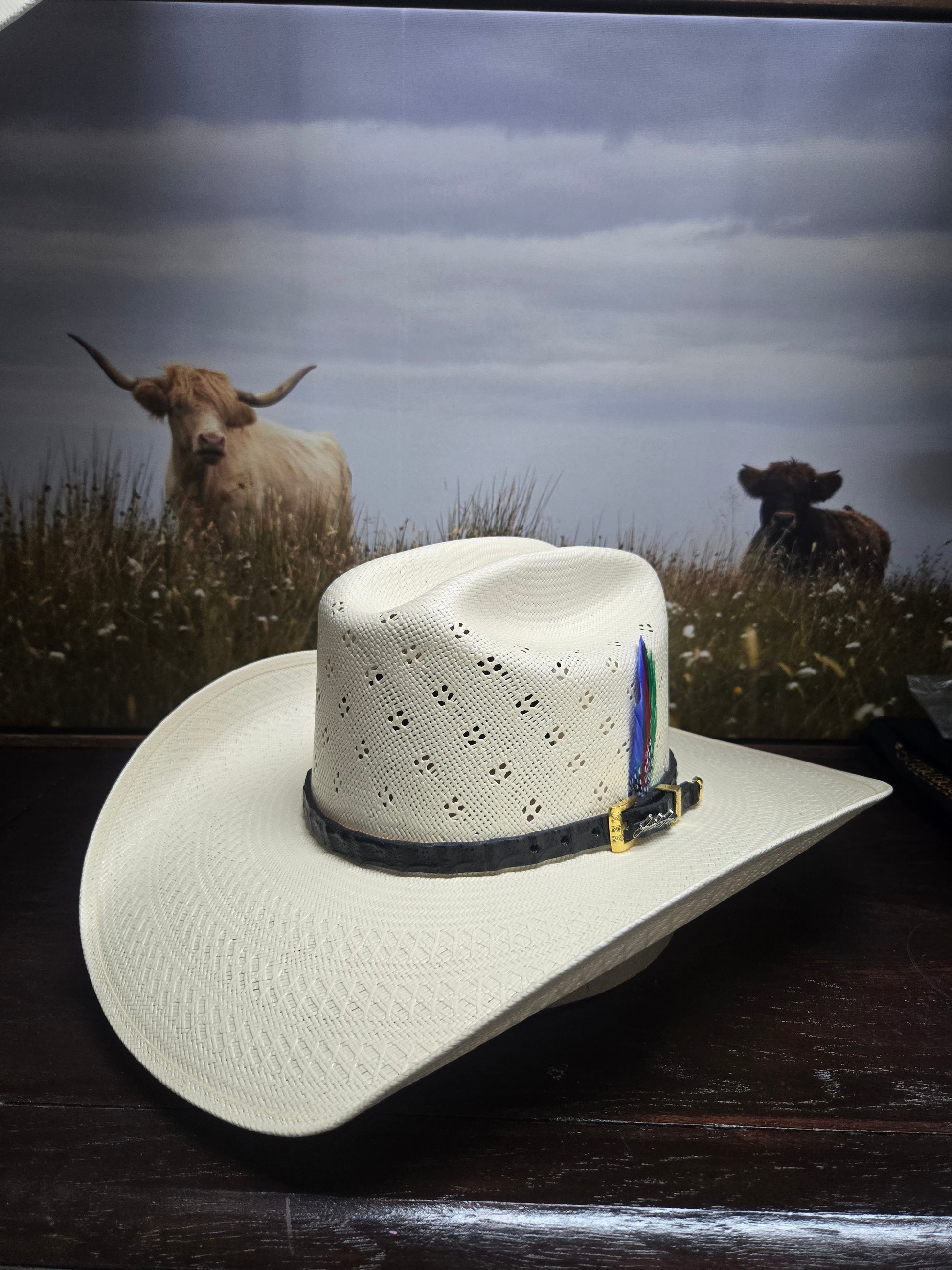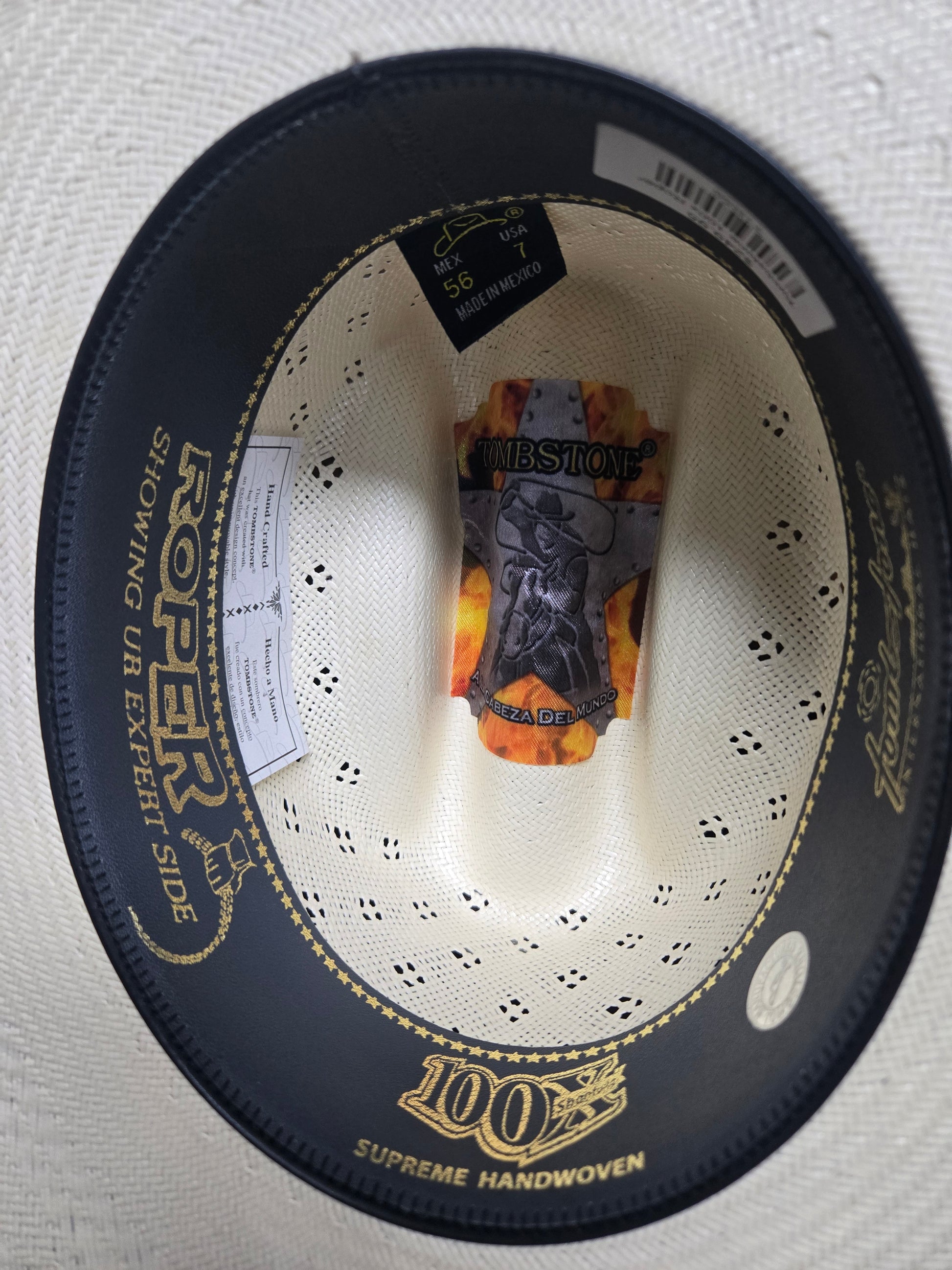 Tombstone 100x Roper Flower Shantung w/ Genuine Caiman Hatband
