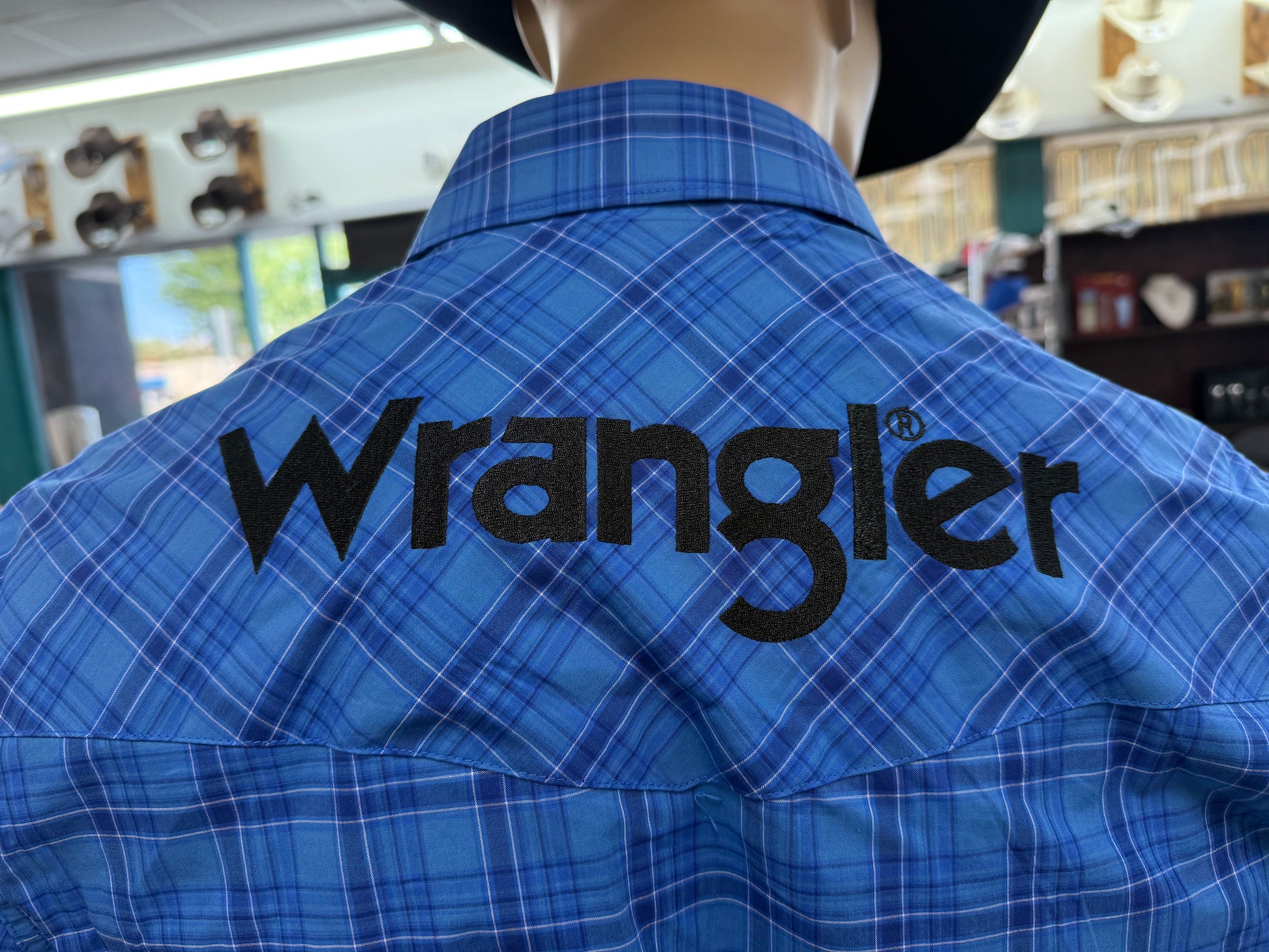 Wrangler Mens Logo Plaid Shirt - Blue